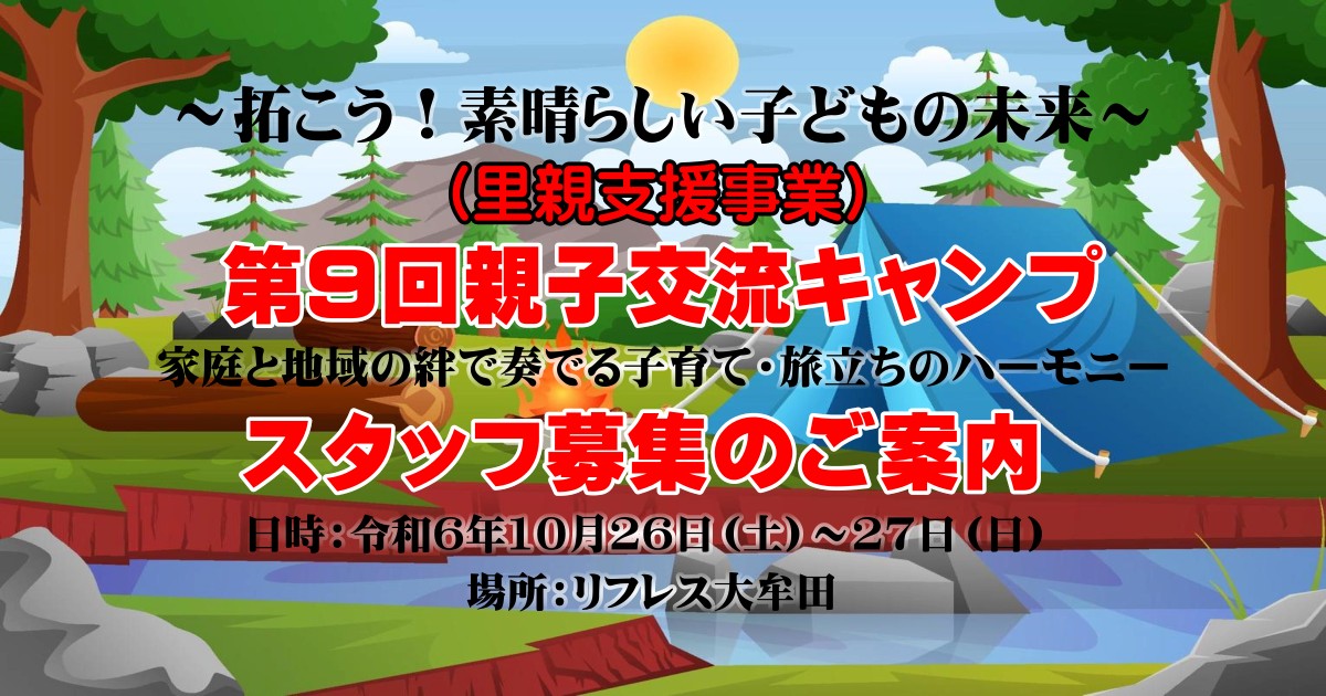 | 18:00~20:00 | 親子交流会 キャンプ場・ファイヤー場 キャンプファイヤー・レクリエーション |